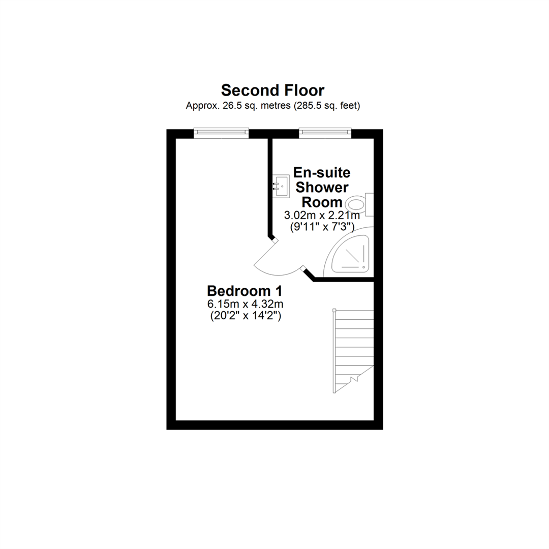 Master Bedroom (Bedroom 1) – 6.15m x 4.32m (20'2" x 14'2") – Spacious top floor suite