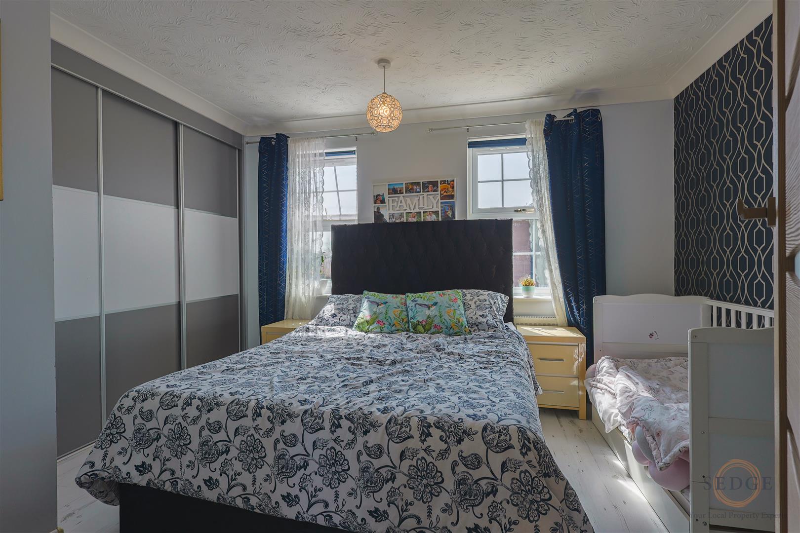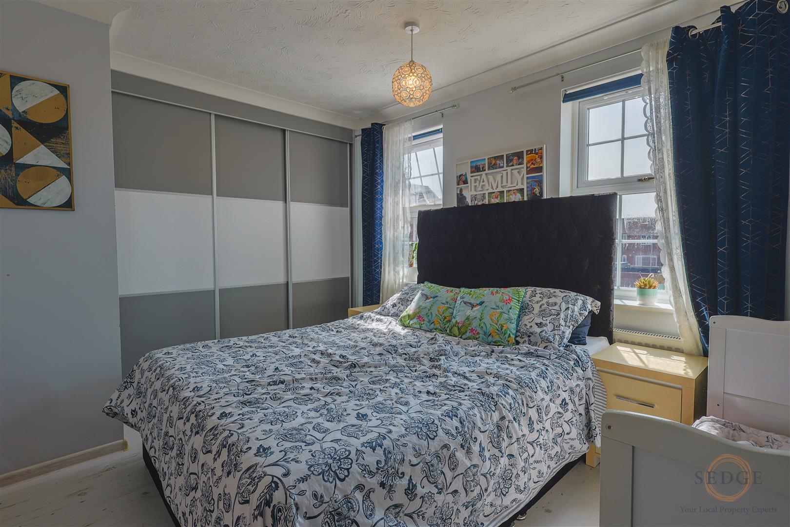 Bedroom 2 – 4.32m x 3.23m (14'2" x 10'7") – Two windows to rear, built-in storage cupboard