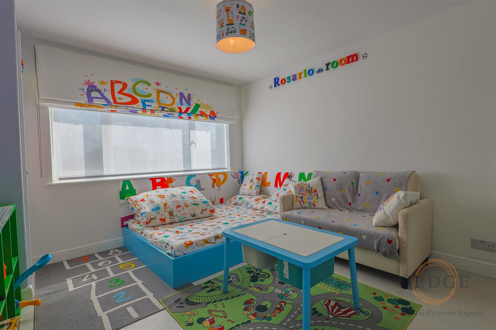 A generous and versatile ground floor room with front-facing UPVC window, fitted cupboard housing the electric meter, and USB point – perfect as a guest bedroom, playroom, or home office.
