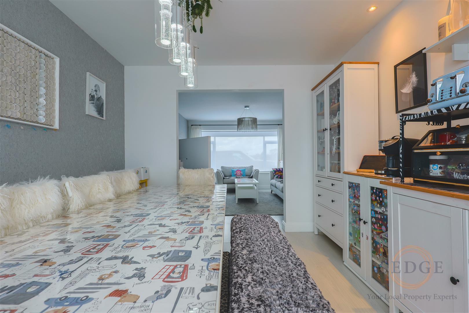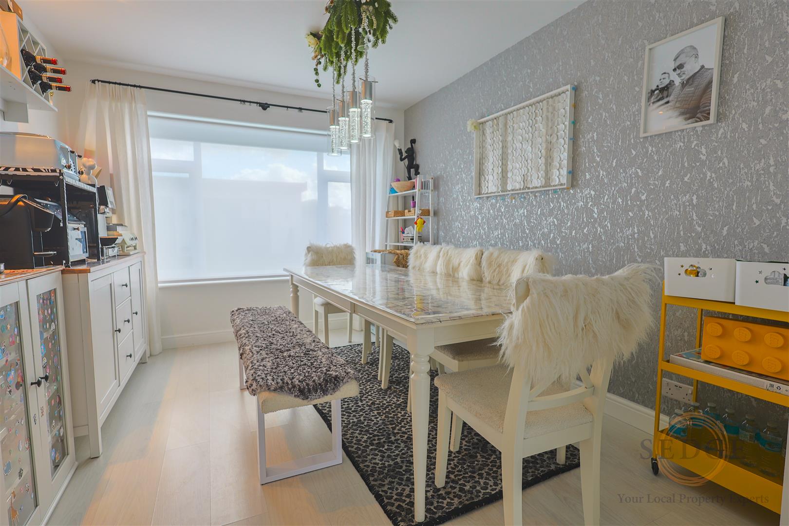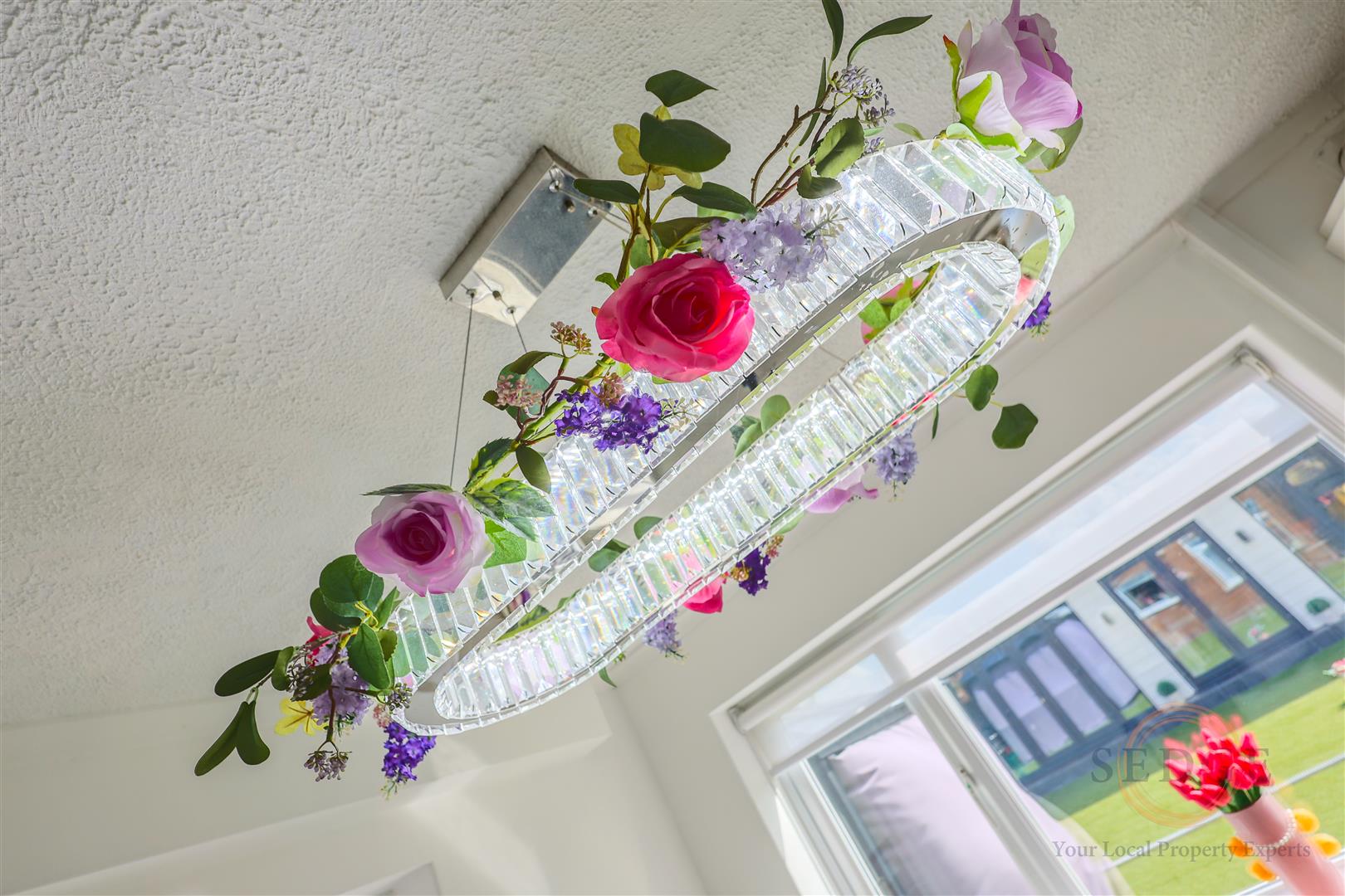 An inviting space overlooking the rear garden with inset LED lighting, centre light fitting, and USB point – ideal for family meals or entertaining.