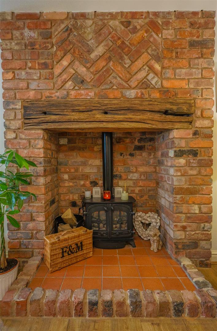 Living Room (4.90m x 4.09m): This beautifully appointed room is an inviting sanctuary, where a charming brick-built fireplace takes center stage. The large bay window floods the room with an abundance of natural light, creating a warm and welcoming atmosphere ideal for both relaxation and socializing.