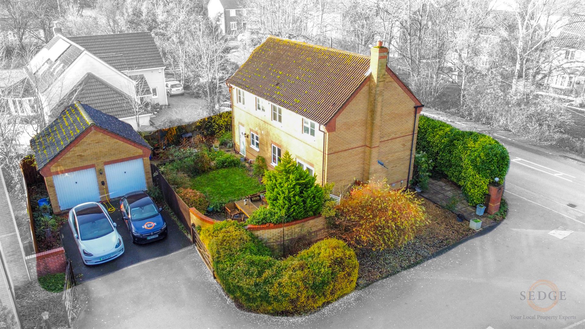 - Detached double garage with EV charging point