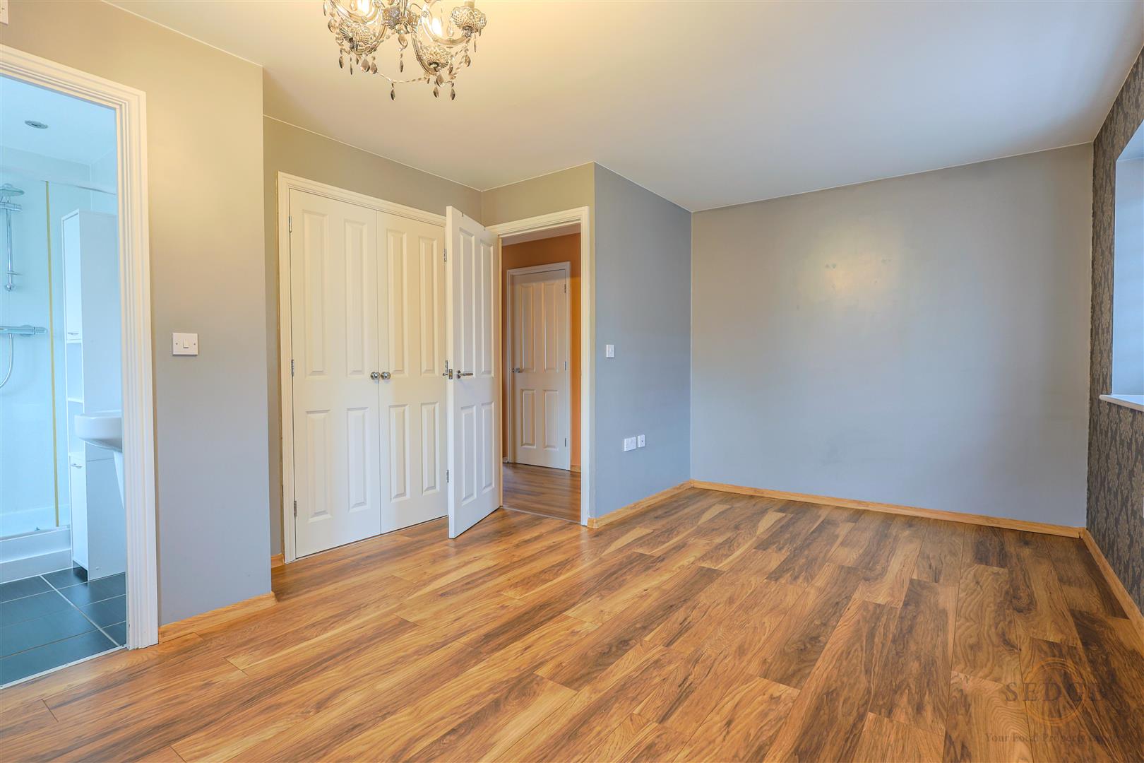 A generous double bedroom with laminate flooring, ceiling light and uPVC windows to the front and side elevations. Door leading to the en-suite.