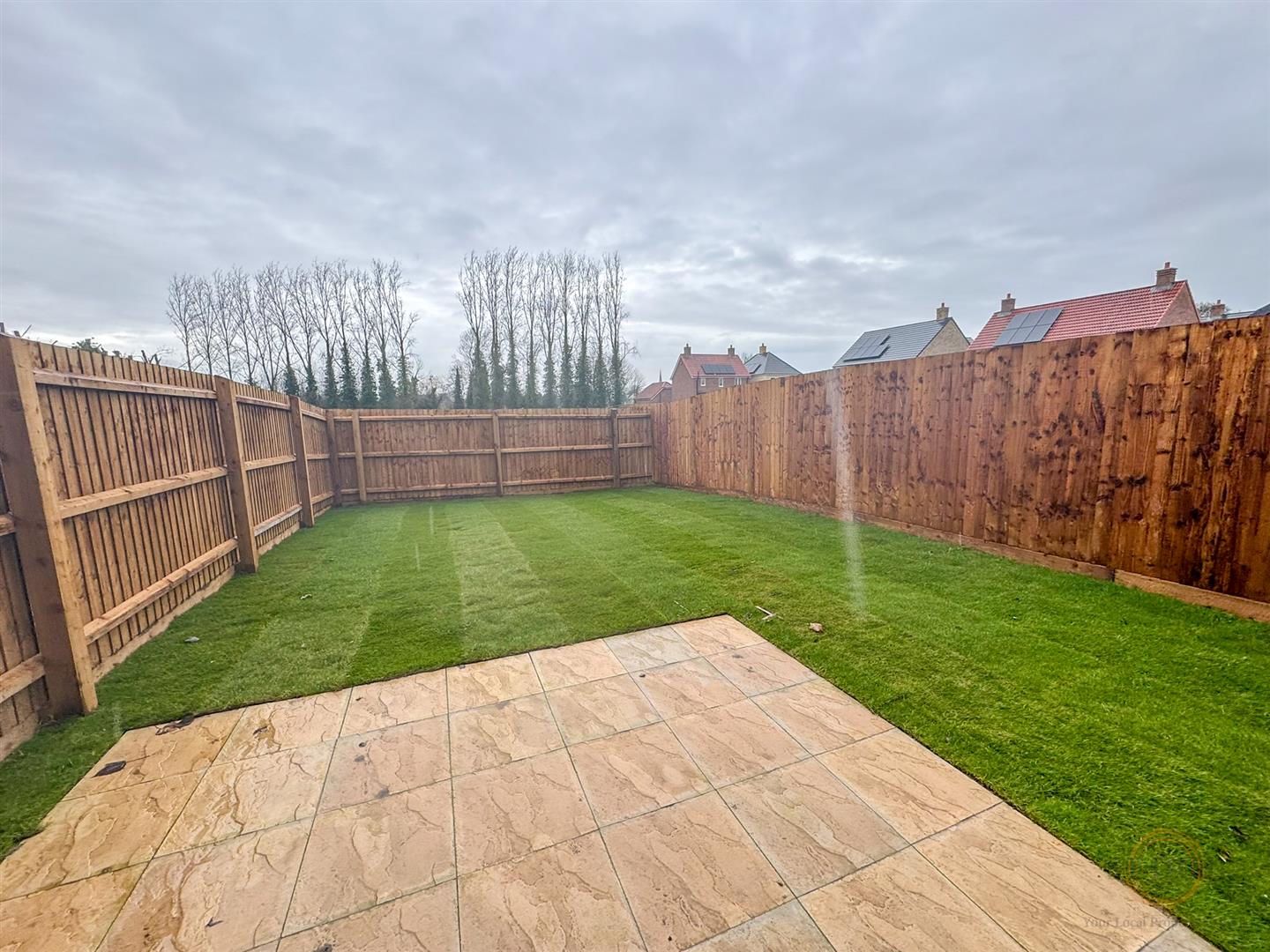 The rear garden is enclosed by timber fencing and benefits from a lawned area and patio — ideal for outdoor seating and entertaining.