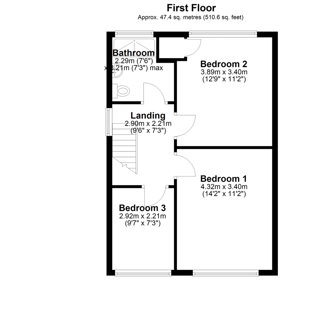 Light and airy landing with side-facing window and access to all first-floor accommodation.