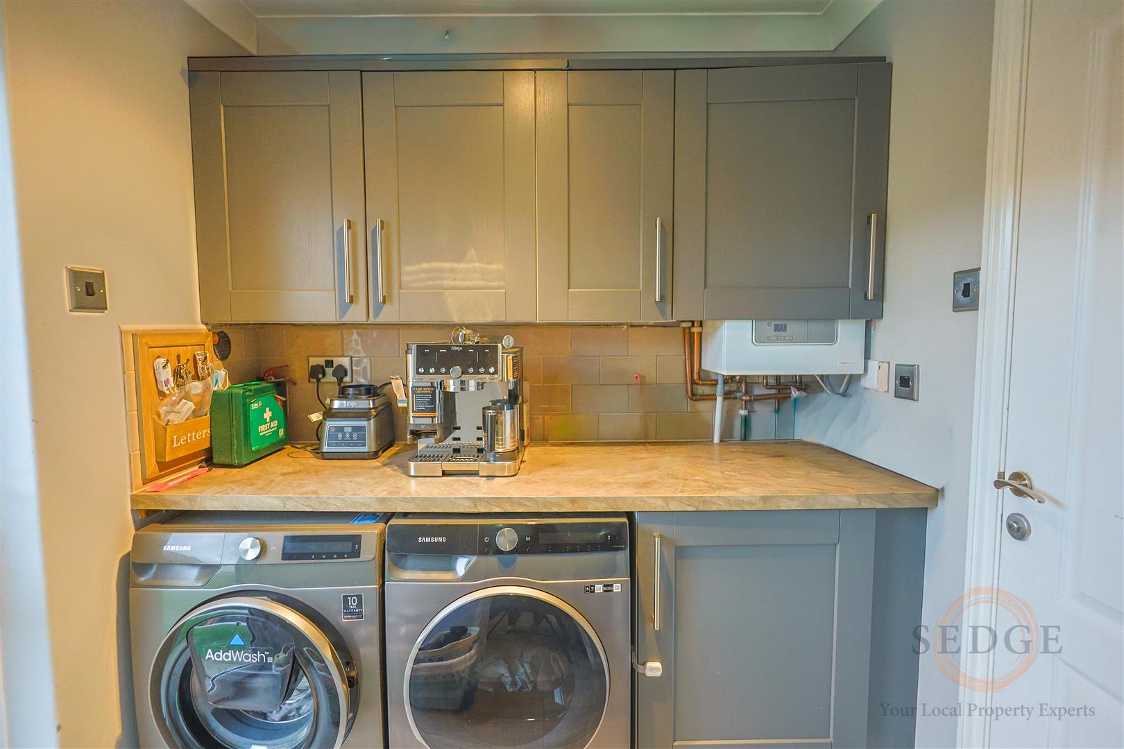 - Modern fitted kitchen with integral appliances and utility room