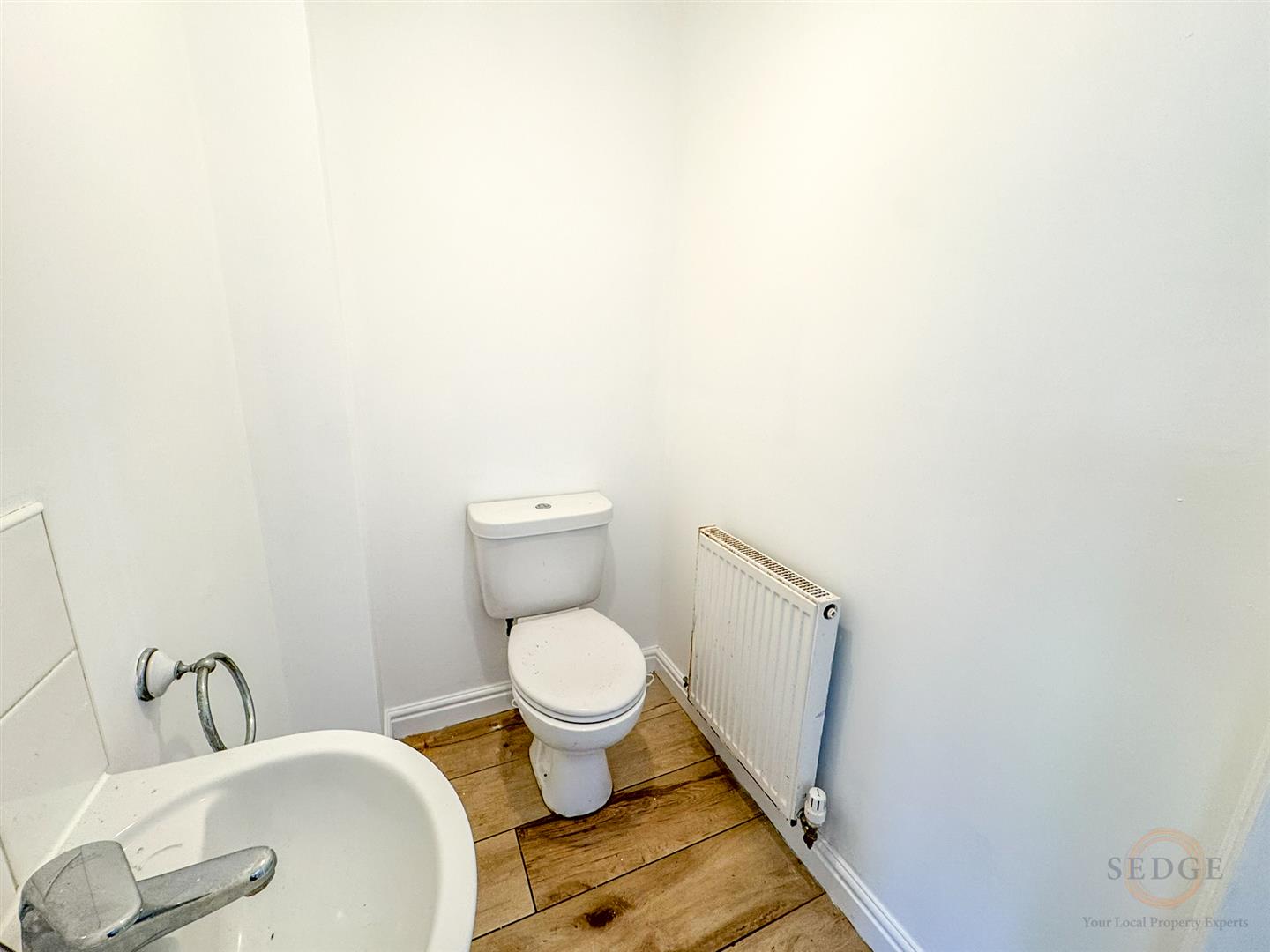 Being fitted with a low level WC, wall mounted wash hand basin with tiled splashback, radiator, tiled flooring.