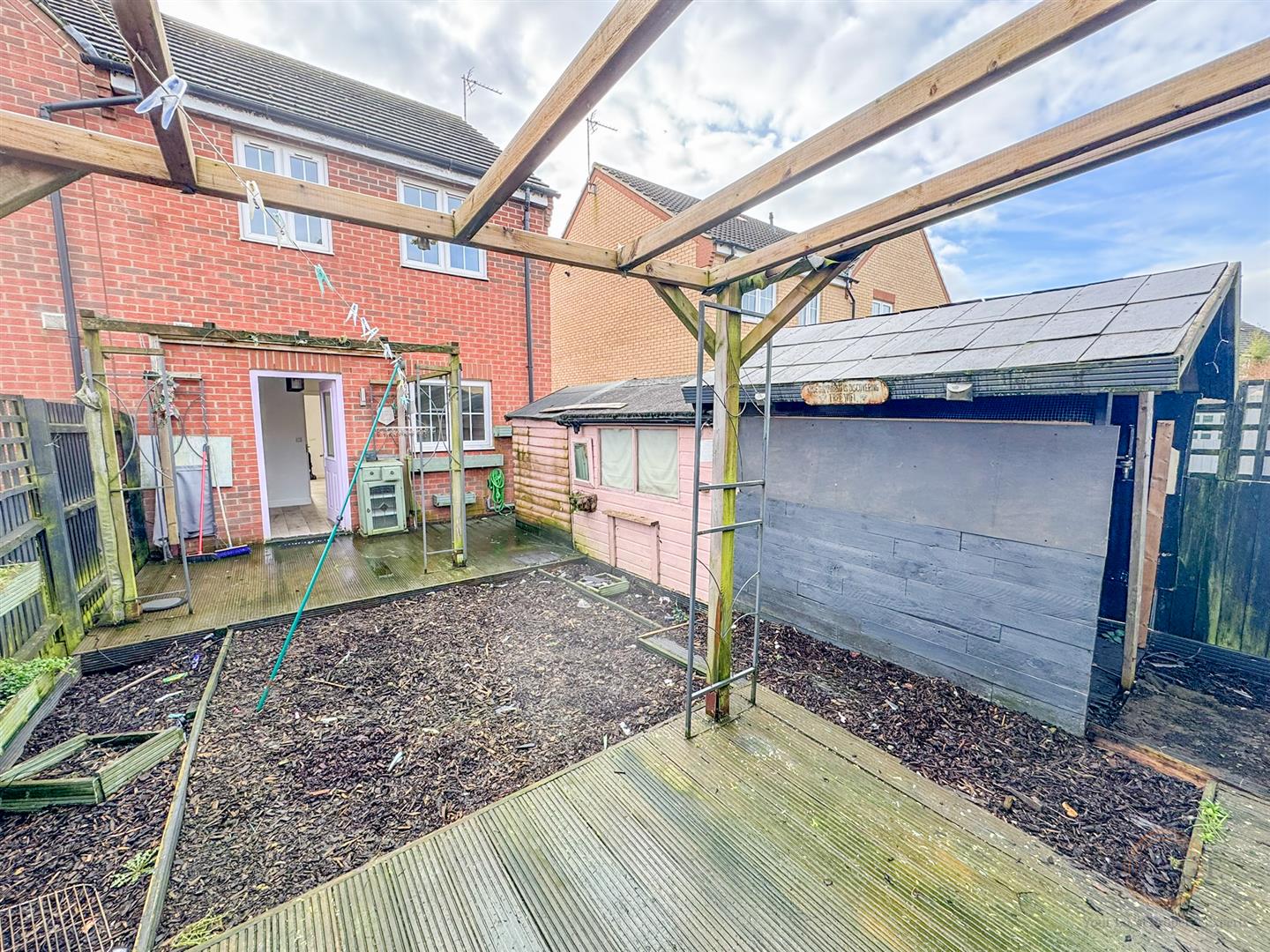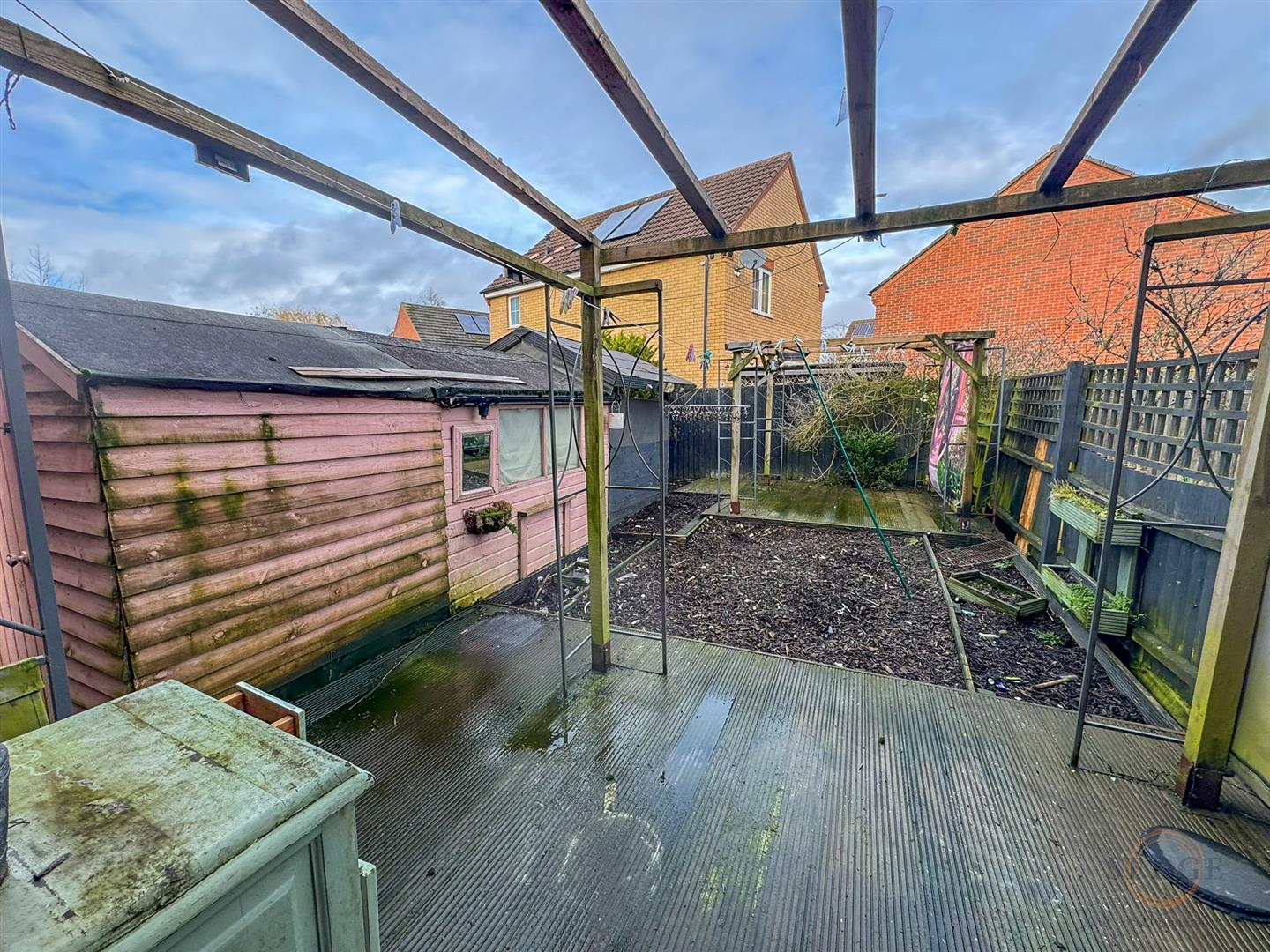 The rear garden benefits from two decked seating areas leading to the remainder of the garden which is laid to bark chippings. The garden houses two timber sheds and is fully enclosed by timber fencing.