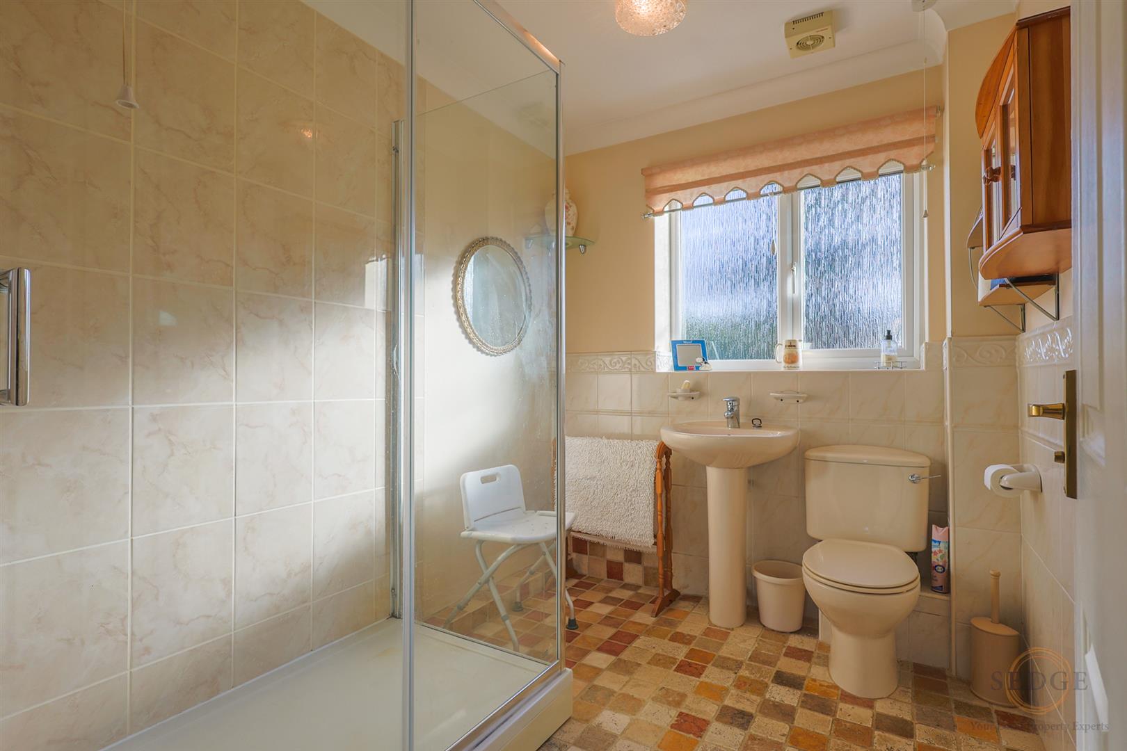 Upstairs? No stairs needed – the three bedrooms are all on the ground floor: a spacious principal Bedroom 1 with built-in double wardrobe and rear aspect, plus two further well-proportioned bedrooms. The family bathroom features a practical bathroom with large walk in shower.