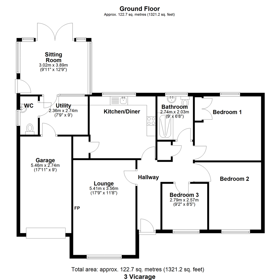 Upstairs? No stairs needed – the three bedrooms are all on the ground floor: a spacious principal Bedroom 1 with built-in double wardrobe and rear aspect, plus two further well-proportioned bedrooms. The family bathroom features a practical bathroom with large walk in shower.