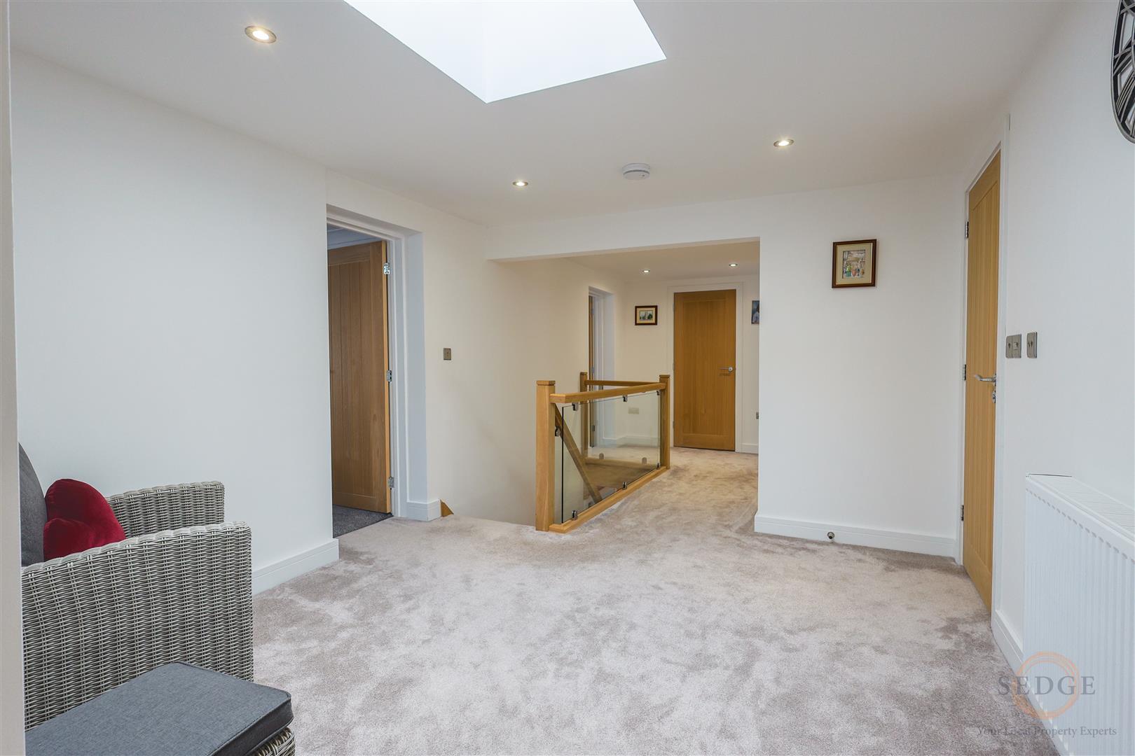 This exceptional five-bedroom detached property has been immaculately maintained and is now beautifully presented throughout. Offering approximately 347m² (3,740 sq ft) of versatile accommodation, the home features a stunning open-plan kitchen with quartz worktops, multiple reception rooms, five double bedrooms including a principal suite with dressing room and en-suite, and high-quality finishes throughout. Externally, the property benefits from a landscaped rear garden with porcelain patio, off-road parking, and the recent addition of a concrete-built double garage to the rear. Located in the desirable village of Saracen’s Head, this outstanding family home is offered for sale by Sedge Estate Agents and must be viewed to be fully appreciated.