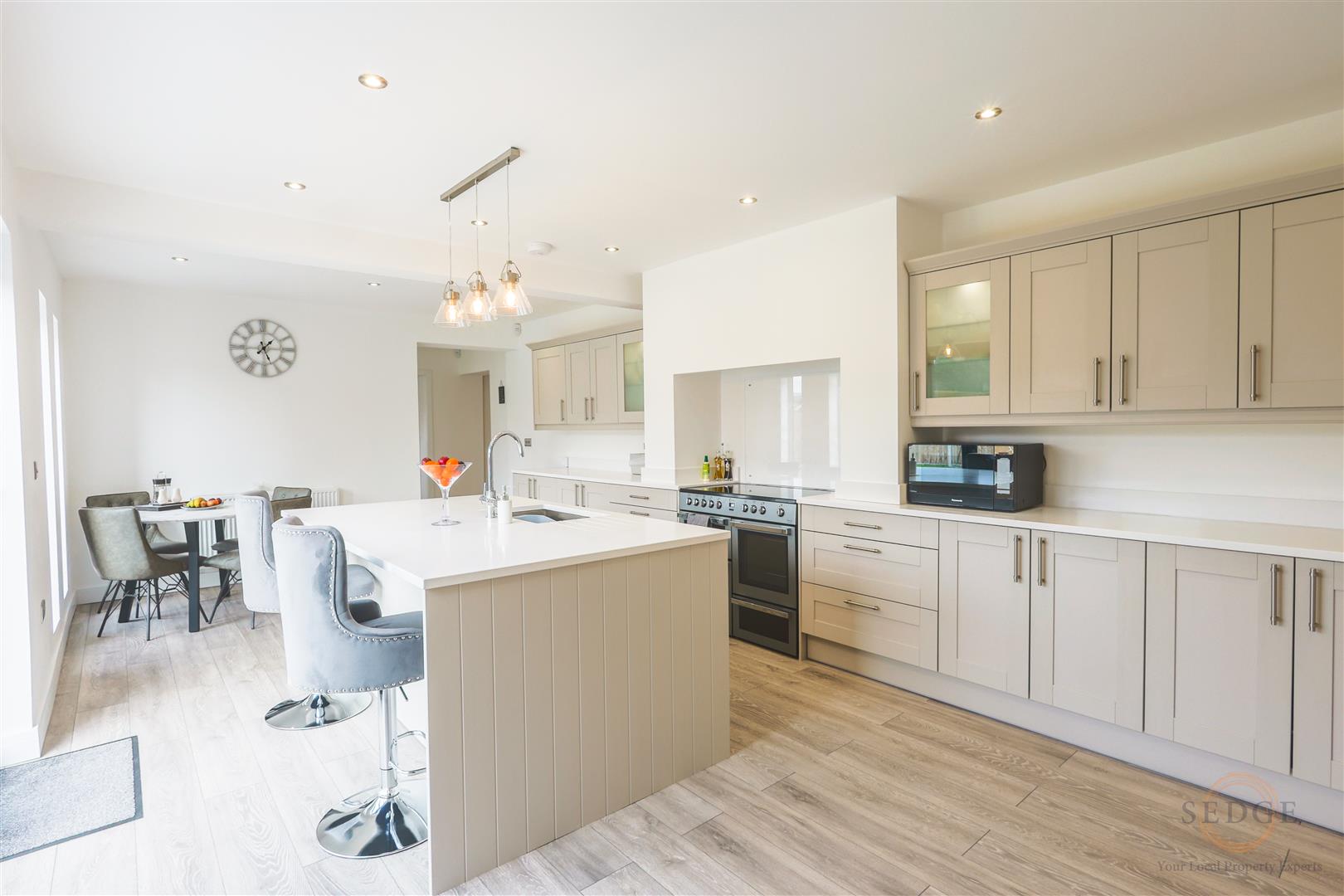 - Impressive open-plan kitchen with quartz worktops