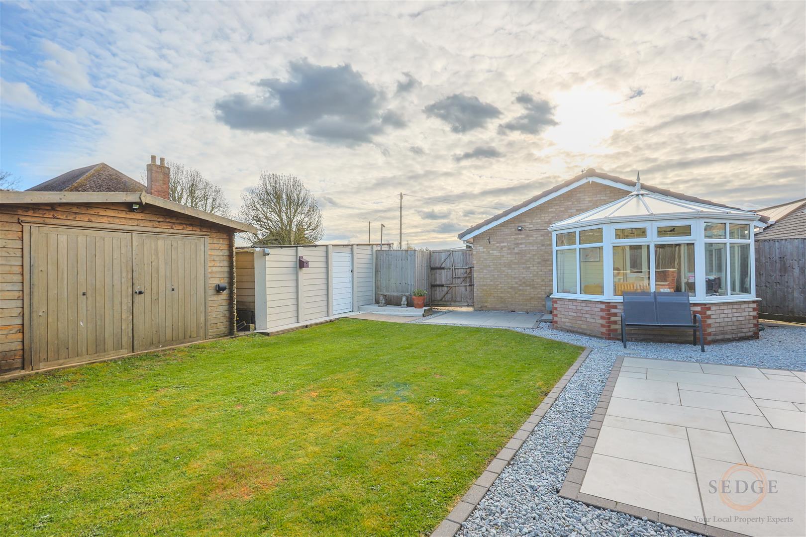 This chain-free, two-bedroom bungalow in the desirable Saracens Head area of Holbeach offers a perfect blend of comfort, style, and versatility. Boasting a spacious lounge/diner with log burner, modern kitchen, and a bright conservatory, the property flows seamlessly onto a stunning, fully enclosed rear garden. Outside, a single garage, ample off-road parking, a large shed, and an additional electric outbuilding provide practical and flexible spaces. Ideal for families, downsizers, or those seeking a home with home-office potential, this bungalow is a rare opportunity in a peaceful yet well-connected location.