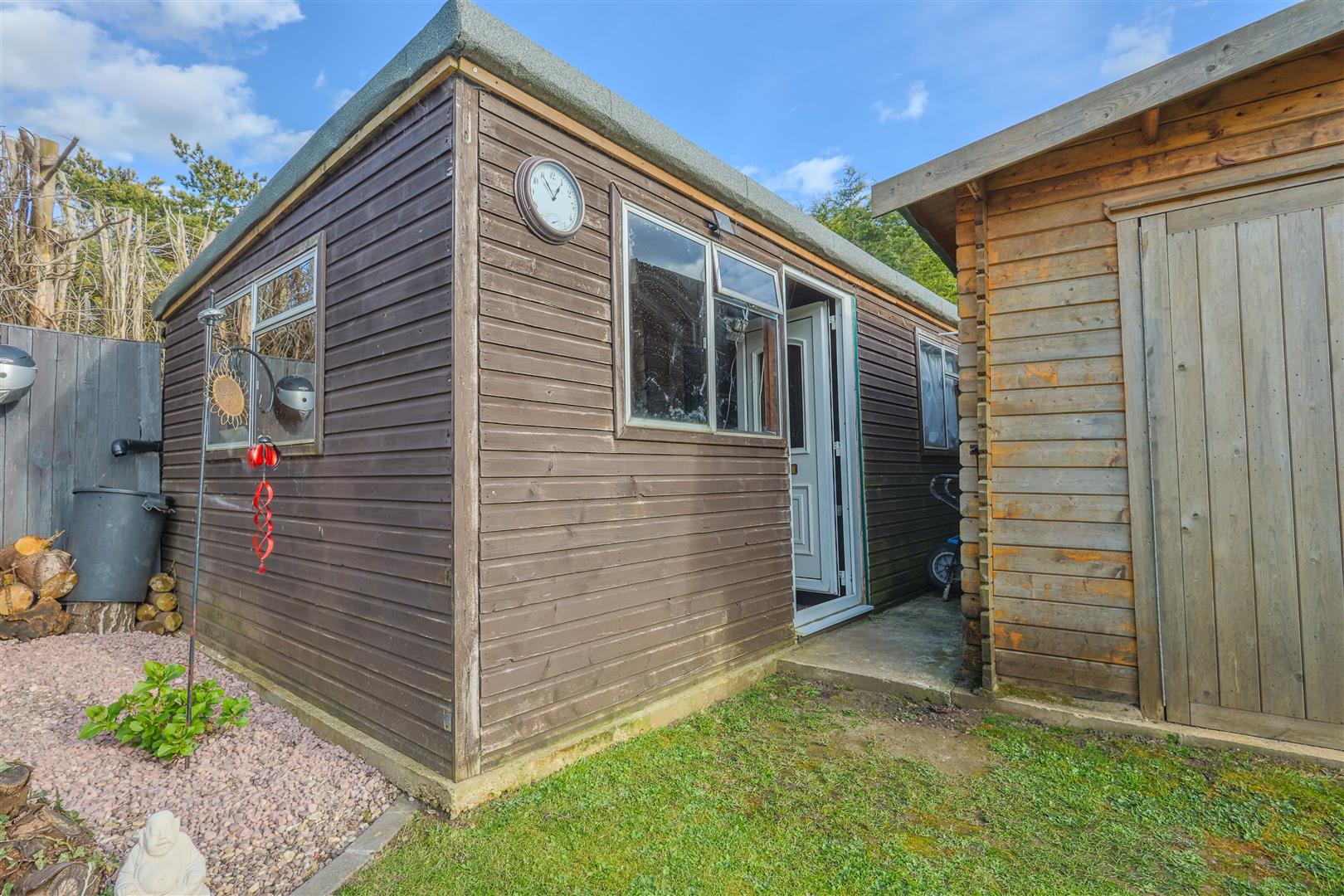 The rear garden is a true highlight of this property—fully enclosed private and not overlooked, well-maintained, and ideal for outdoor living or entertaining. To the front, there is ample off-road parking and a single garage with electric. Additionally, a large well insulated shed and a log cabin/workshop with electricity provide versatile space for a home office, workshop, or studio.